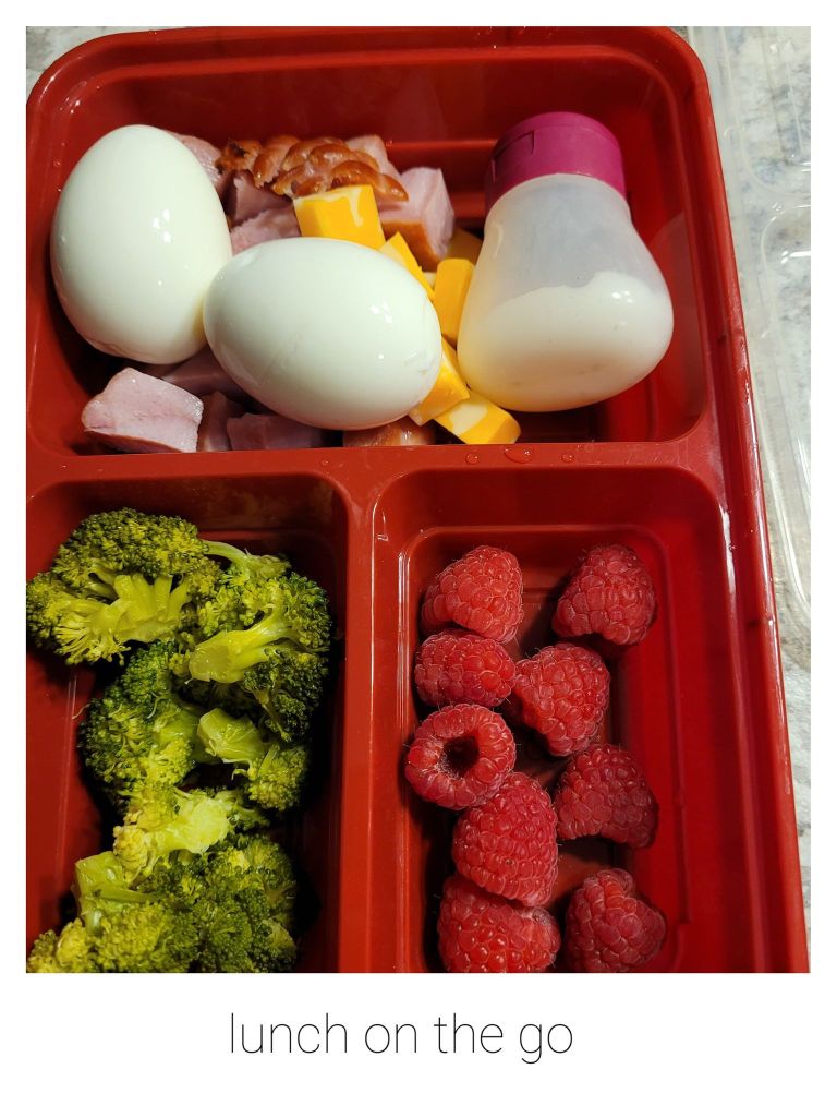 Regardless of a tough week, a new person is starting with me at work tomorrow, I’m working to alleviate the stress, and the new way of eating – putting it all in a box and munch through-out the day, seems to be helping. Time to stop sneaking the slice, the extra cheese, the salad dressings – and then maybe we’ll balance out more than a pound or two on the scale.