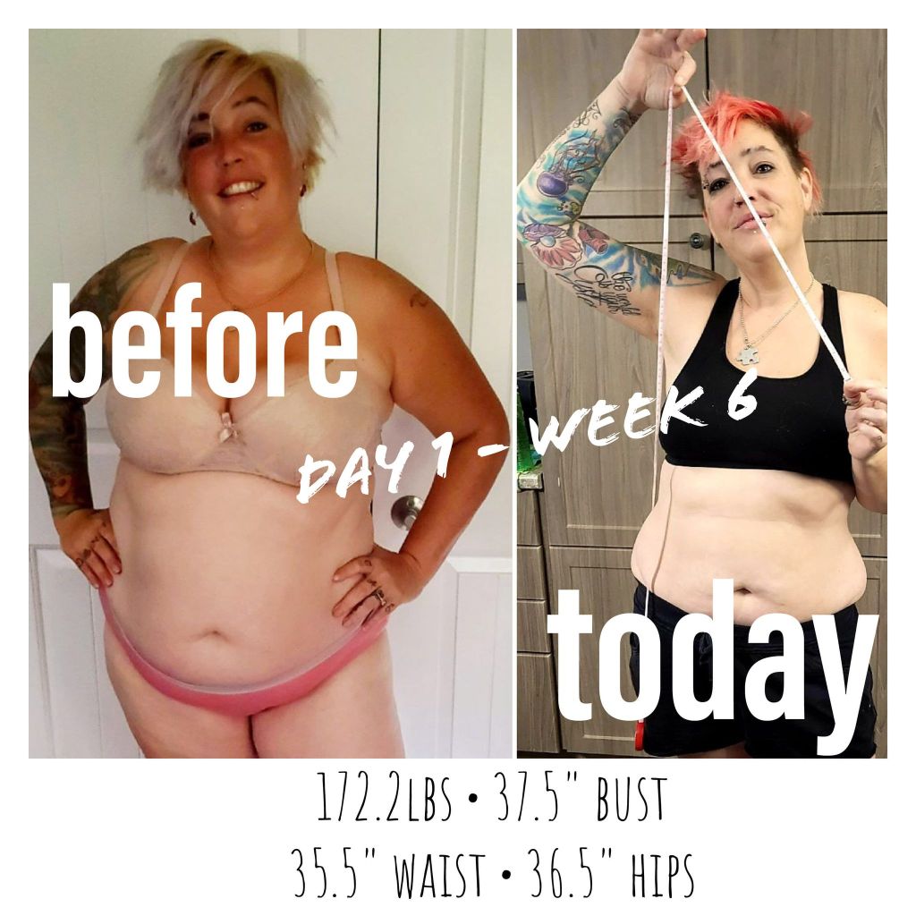 This week, in my silly I-just-woke-up-hair, we pulled out the tape measure to show what it looks like to have lost 17″ off your waist. The edge of 17. Now that I’m into my second week of my second month of doing this completely on my own since the New Year began, I’m a solid 8lbs down. And I’m making concessions to eat, and be sad. To eat and be happy. To dance aerobics. To treadmill. To dye my hair pink. To be thankful for my supportive partner, my Greek Yogurt shakes, and to everyone who keeps motivating me to wake up every morning thankful.