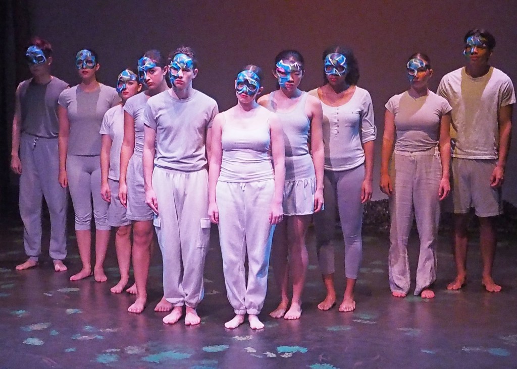 Donned in half-masks, our group lifts from the waters. They are confused, unable to speak, or understand. They are rudimentary, and ignorant. They do not have words. But … who’s this? A swan-like nymph wades through the group. “This is a foot,” she tells them. “This is a hand.” They chant back to her: “a foot!” “Good!” she praises, lovingly touching their faces, their hair; stroking their arms and chiding them like children. And from the midst, a man appears before them. “Are you the one who didn’t make it?” he asks her.