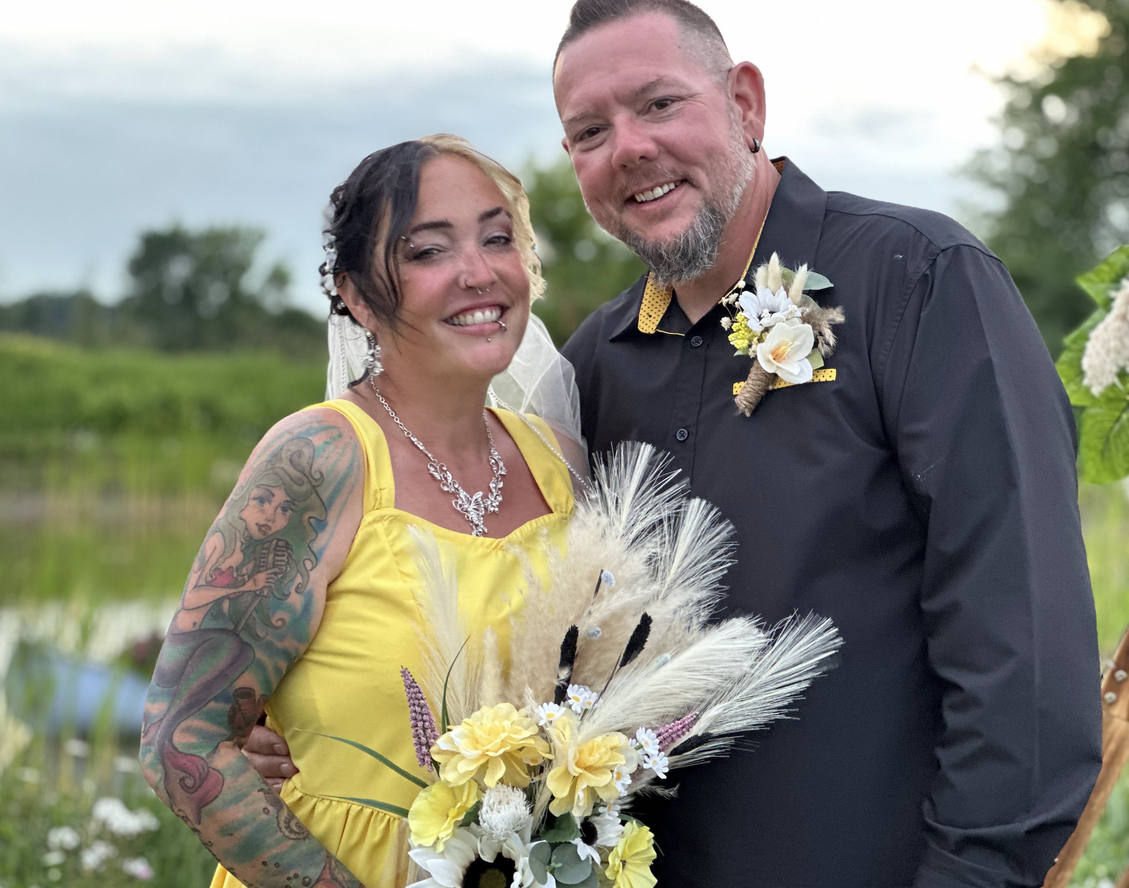 Indeed, she was at my wedding. In our backyard, never, not once since this house was built, did a rolling meadow of wild daisies ever spring up – not until Jan and I selected daisies for our backyard wedding flower and, suddenly, the yard sprang up with the most beautiful wild flowers I have ever seen. Grandma is still here. In the meadow of our home, in the sky that feigned off the rain until after our vows, in the sunrises that paint the clouds like a canvas across our little corner of the world. Grandma is still here.